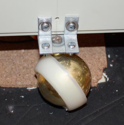 Old Sony VCR remote I am using to control the robot when not in autonomous mode. | New caster wheel works much better than old one with swivel. |