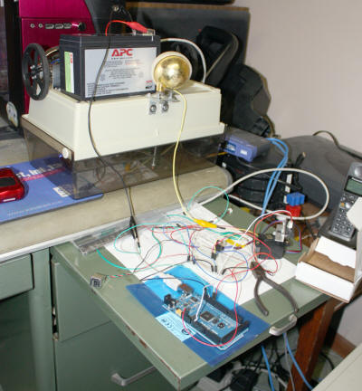 Yes, those are Erector set parts! | Bread boarding the circuits on the bench before installing. |