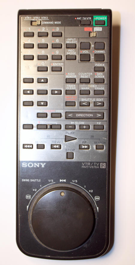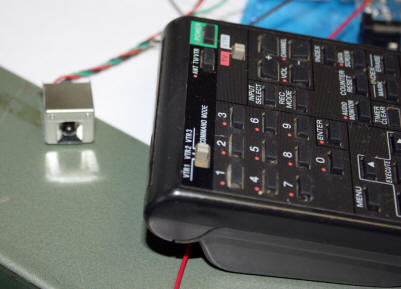 On the left is the Radio Shack IR receiver I picked up years ago. I don't think they sell it anymore. The remote control is actually an old Sony VCR remote which works good because it has jog and shuttle and a bunch of other buttons. |