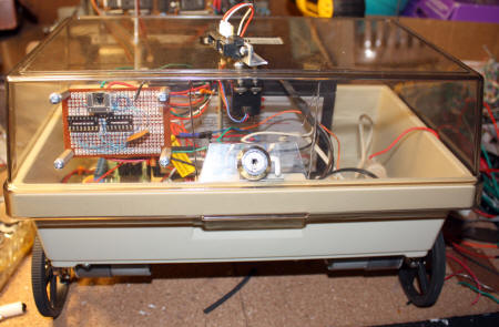 Intro -Arty the robot - design and build started July 2010I had built a robot (Mikey) 20 years ago from spare parts I had and using the 8052 BASIC chip. I built the circuits from scratch using wire warp and TTL chips. The robot had 16K RAM and 16K ROM and used an 8255 for I/O ports and had differential motor design.
