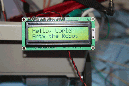 Testing out the new display. | The robot now has an 16x2 LCD display. |