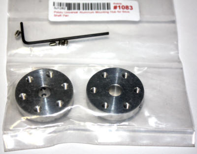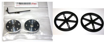 Two motor mounts from Pololu Robotics. | Two wheel hubs from Pololu Robotics makes it very easy to add wheels to motors. |