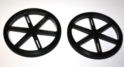 Two 3.4" wheels from Pololu Robotics. | Two 3.4" wheels from Pololu Robotics. |