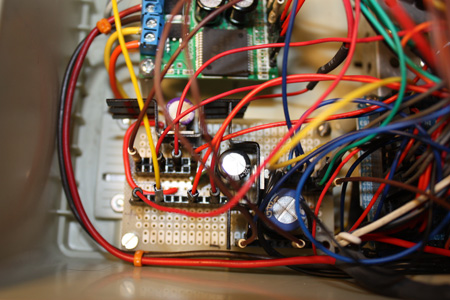 The Radio Shack IR receiver is mounted on this board. | Front view as 8/30/10. |