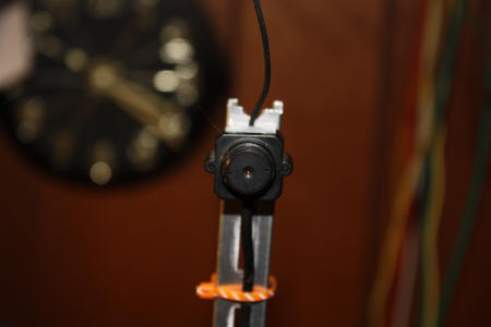 I added a mast to the robot and added a wireless camera. The mounting is not finished yet. | The wireless camera is mount to the top of the mast and can help me navigate the robot via remote control. |