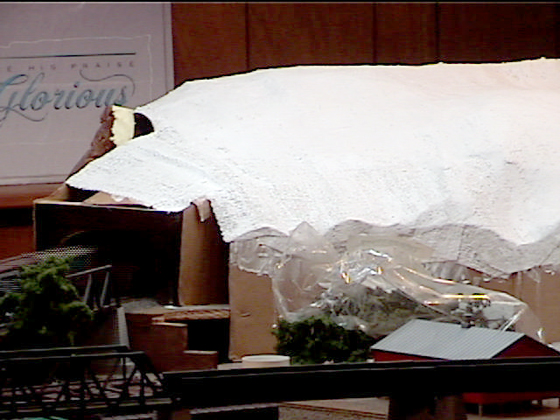 Cardboard strips help make mountain rigid and form basis for