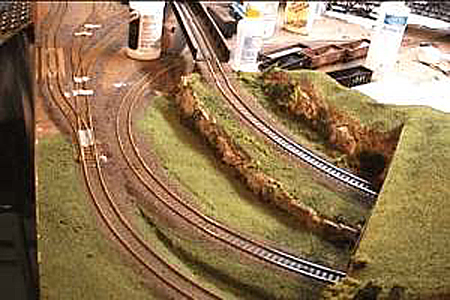 Next cork roadbed is glued