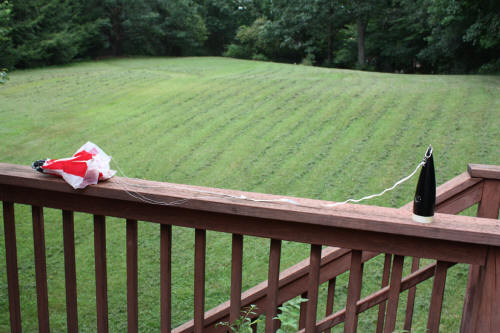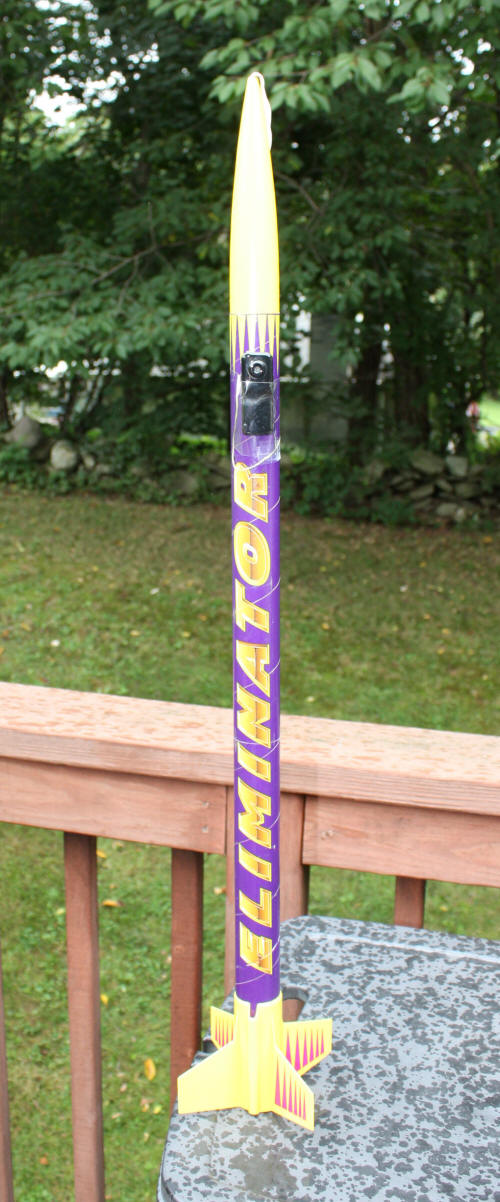 I used a large 24" chute for slow decent and longer videos. | Here the camera is simply taped to the outside of an Estes Eliminator and it flies on a C11-3 or D12-5 or E9-6. |